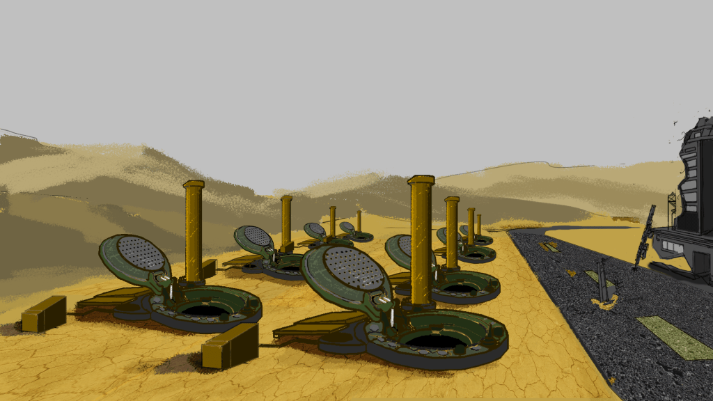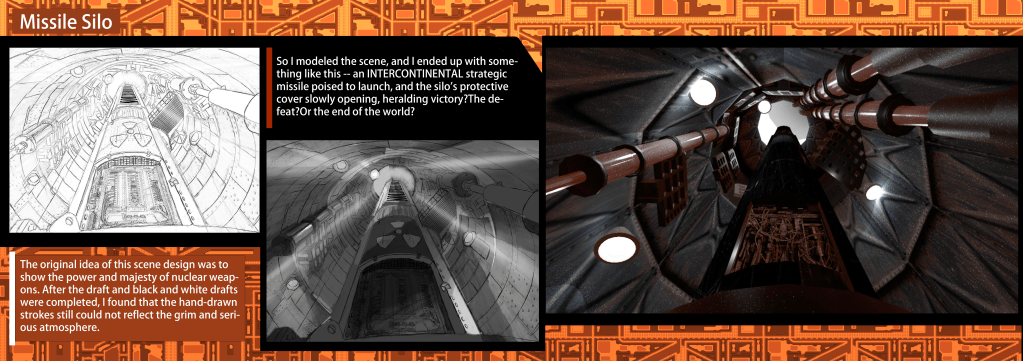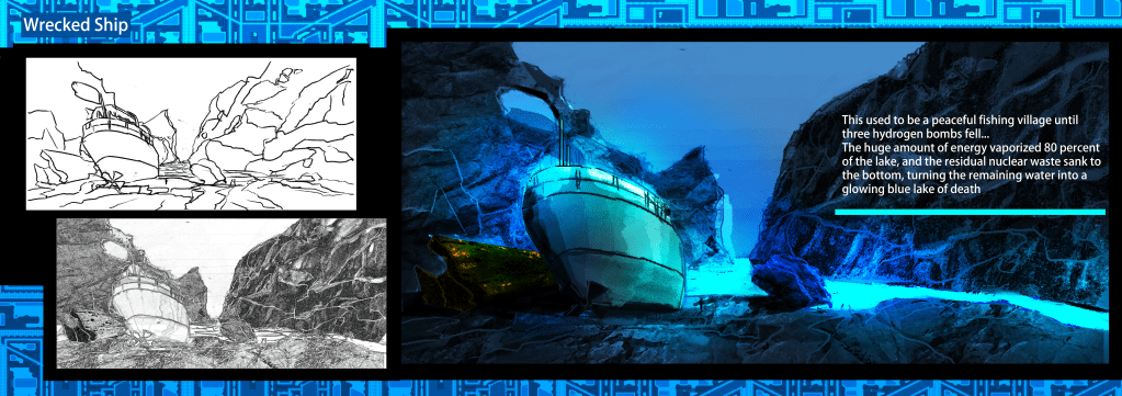 I was focusing on the environmental story telling in this concept, I want to build a melancholy atmosphere with massive destructed landscape, with tiny characters.