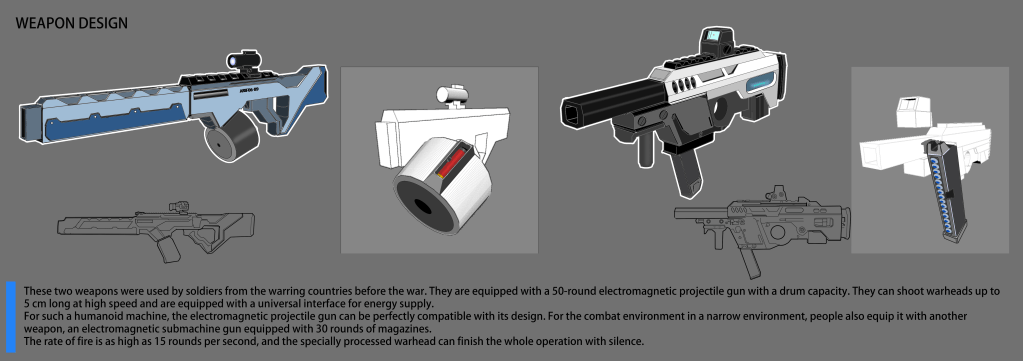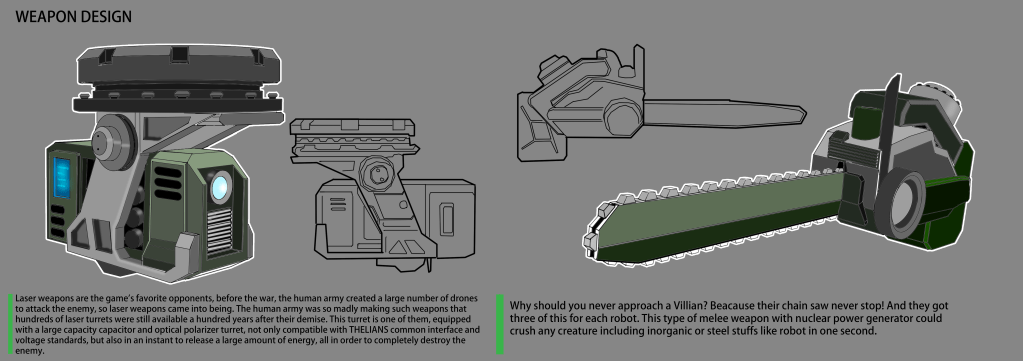 Besides, I also design few weapons for the characters from both factions.