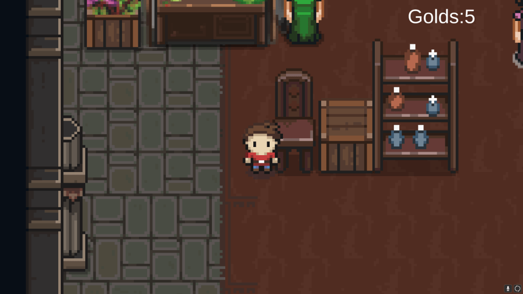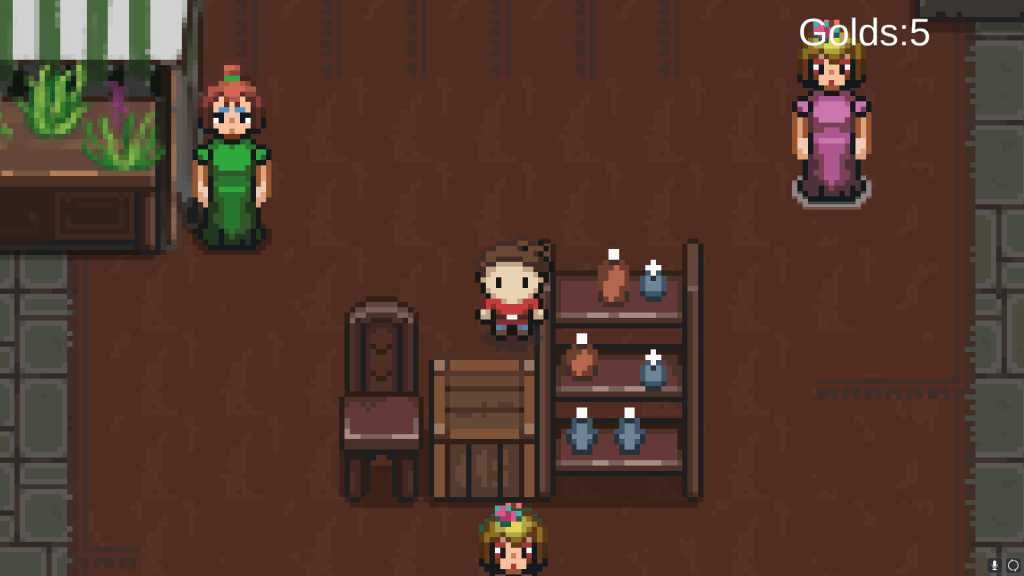 As an alchemist, your primary goal is to craft potions out of herbs for the adventurers. You can go to the castle’s second floor for crafting, right now I haven’t finish drawing the second floor, so you can just click the upper stairs to have craft option.
