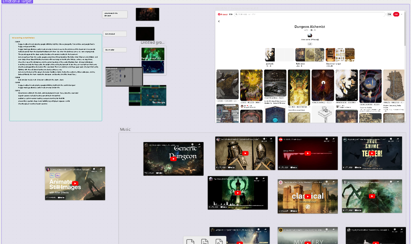 This imaginary trailer serves as a “Emotional target”, it’s an anchor point that captures essential feelings of the dungeon alchemist, so it could keep me from forgetting these feelings and lost in the details of the development. It keeps me from repeatedly changing direction of the design.