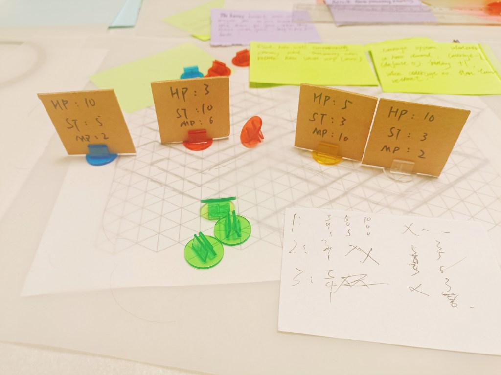 I primarily chose the paper based prototyping set up, with various of tokens.